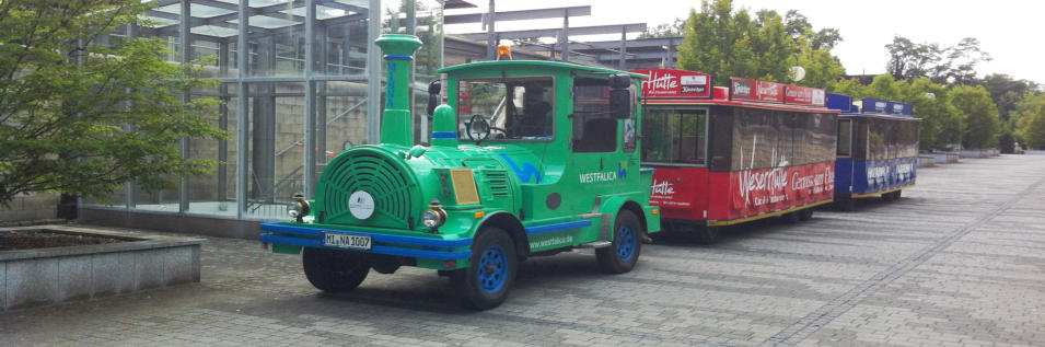 Von Bad Oeynhausen auf der Weser bis nach Minden und wieder zurück - erleben Sie bei einer Fahrt mit der Ausflugsbahn MINNA und an Bord der Mindener Fahrgastschifffahrt die Weser, das berühmte Wasserstraßenkreuz und die historische Stadt Minden. Am Abend bringen wir Sie ganz bequem per Bus-Transfer von Minden wieder nach Bad Oeynhausen zurück.
